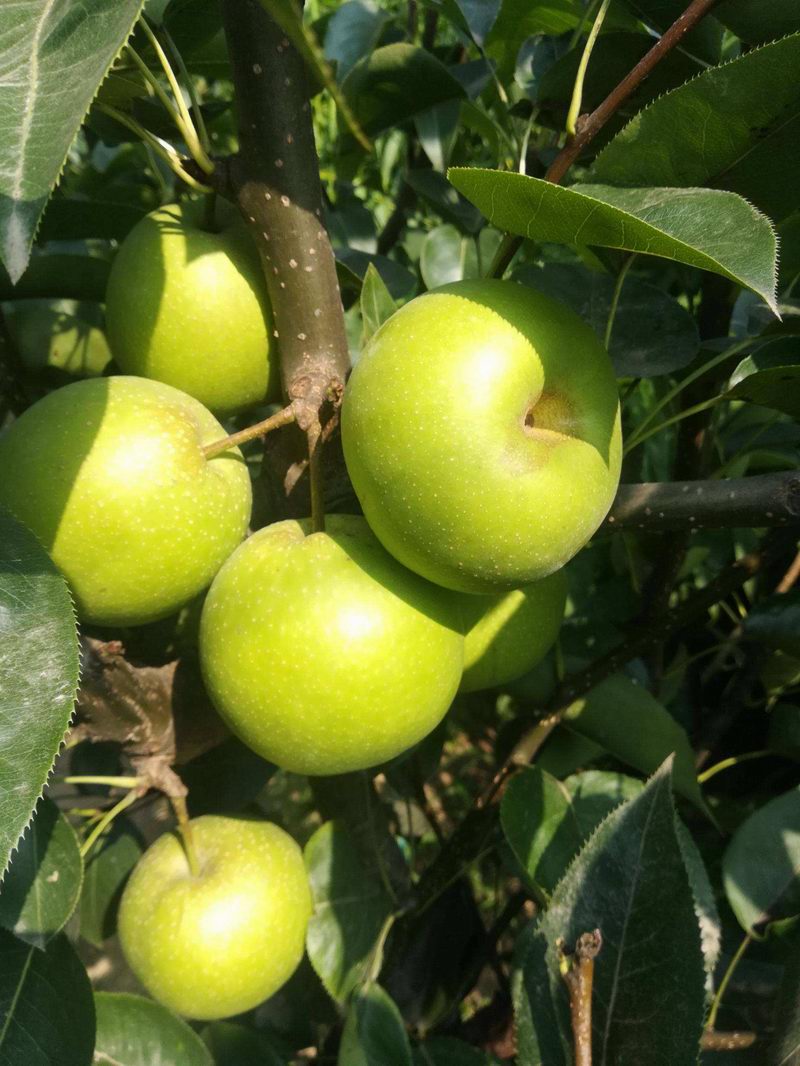 蘇翠一號是江蘇農科院用翠冠梨做父本和華酥梨做母本雜交而成的早熟優(yōu)質梨品種,綜合彌補了二者優(yōu)點,做到了果肉甜脆且果面光滑無果繡。蘇翠1號在魯南地區(qū)的成熟時間為7月中旬,果實卵圓形,平均果重270克,果面平滑臘質多,果皮黃綠色,果肉白色,肉質細脆,石細胞極少,汁液多味道甜,貨架期半個月,可以自花授粉。